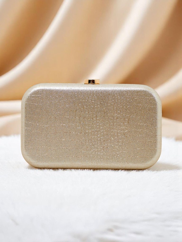 - Aplokšņu soma izgatavota no ekoādas, pārklāta ar audumu ar mirdzošu diegu un smalku reljefu. Aizdare ar spiedpogu, noņemama ķēdītes siksniņa—elegance un mirdzums vienā.