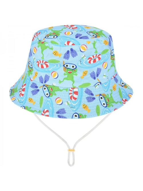 - Bērnu spainīša cepure ar krāsainu, jautru rakstu. Viegls un ērts, lieliski piemērots vasaras dienām. Aizsargā no saules un piešķir enerģiju jebkuram bērna apģērbam!