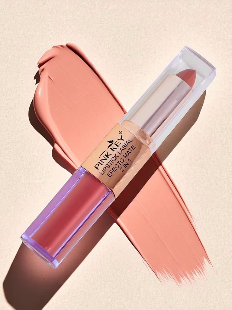 - 2-in-1 lūpu krāsa stienī un šķidrā formā apvieno precizitāti, noturību un lietošanas komfortu. Stienis sniedz intensīvu krāsu, bet šķidrā formula nodrošina ilgnoturīgu efektu un satīna finišu. Piemērota jebkuram gadījumam – nav nepieciešami labojumi daudz