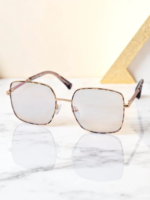 • Stilīgas saulesbrilles ar kvadrātveida, bezapmales lēcām. Pieejamas dažādās krāsās. Zelta detaļas un vieglas kājiņas piešķir modernu izskatu un ērtu valkāšanu.