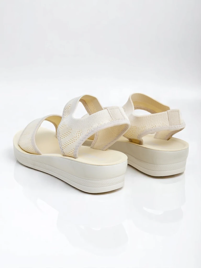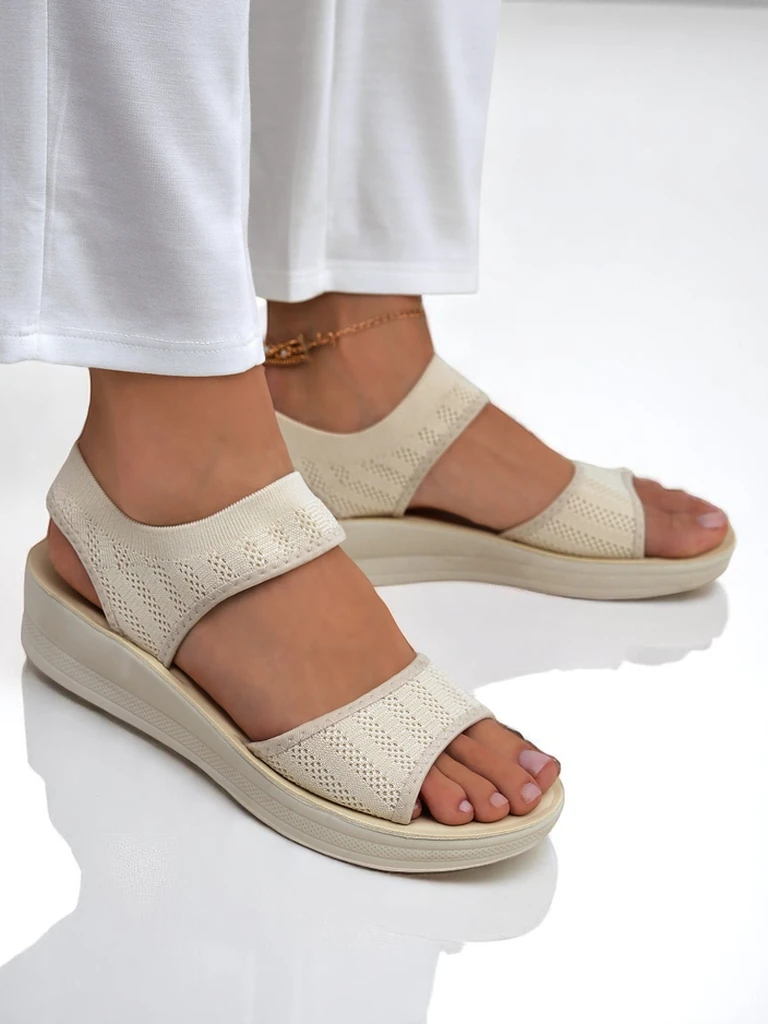 - Sandalie dame me themel te trashë, që vishen lehtë, me shtrojë të rehatshme prej lëkure ekologjike. Rripat elastikë prej pëlhure përshtaten me këmbën, ndërsa elastiku në kyçin e këmbës siguron qëndrueshmëri dhe rehati gjatë veshjes. Ideale për verë – të l