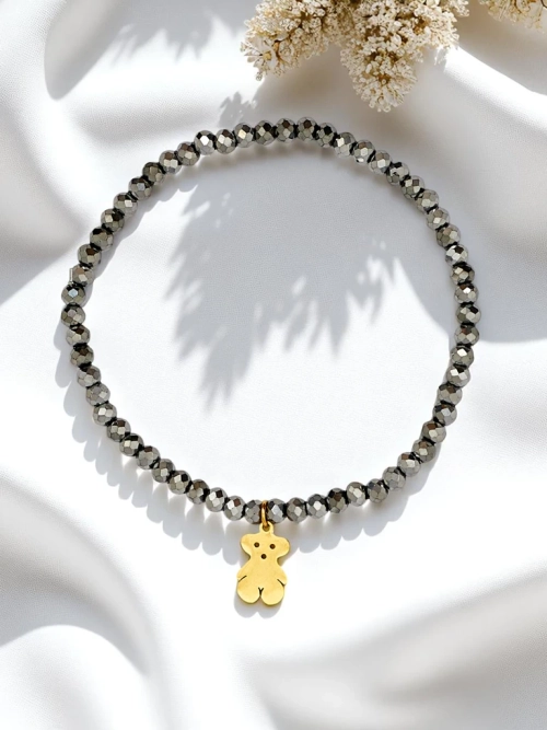 - Rokassprādze ar pērlītēm un rotaļu lāča piekariņu ir šarmants un sirsnīgs aksesuārs, kas simbolizē rūpes, maigumu un bērnišķīgu prieku. Lieliski piemērota dāvanai vai personīgam rotājumam, tā piešķir jebkuram tērpam maiguma un bezrūpības pieskārienu.