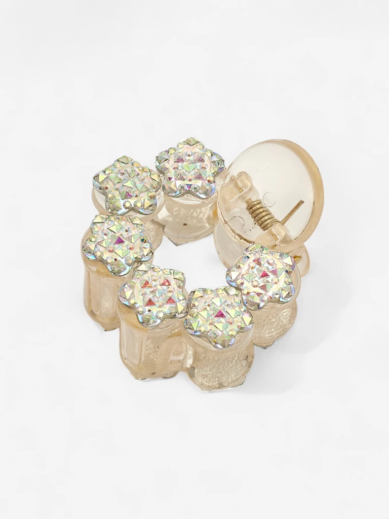 Lasnica Aurora Flora je izjemen dodatek, ki navdušuje z eleganco in sijajem. Izdelana je iz visokokakovostne transparentne plastike (brez BPA), ima nežen zaključek in visoko vzdržljivost, zato je idealna za vsakodnevno uporabo. Okrasni del sestavljajo cvetovi, prekriti z bleščečimi akrilnimi kristali v stilu aurora borealis, ki učinkovito odbijajo svetlobo in pritegnejo pozornost. Vzmetni mehanizem omogoča hitro in varno pritrditev pričeske, močan oprijem pa zagotavlja stabilnost tudi med intenzivnimi gibi.