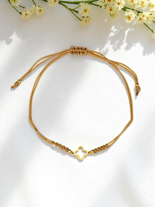- Regulējama auklas aproce jūras stilā, dekorēta ar smalku zelta piekariņu. Viegls un elegants aksesuārs, ideāli piemērots vasaras dienām. Piešķir jebkuram apģērbam zelta mirdzuma pieskārienu, apvienojot jūras noskaņu ar greznības niansi. Lieliski piemērots