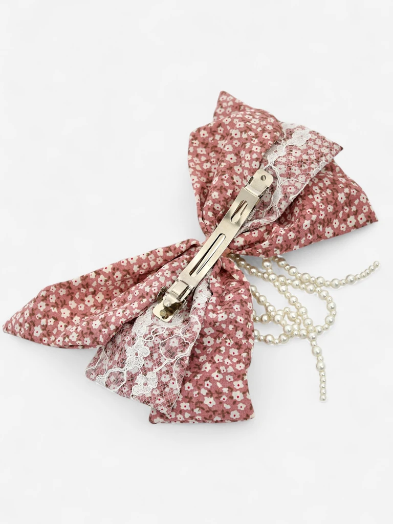 Bellafiora to elegancka spinka do włosów inspirowana ponadczasową estetyką śródziemnomorską, która zachwyca swoim romantycznym wyglądem. Wykonana została z najwyższej jakości bawełnianej tkaniny o drobnym kwiatowym wzorze oraz delikatnej koronki, która podkreśla lekkość i dziewczęcy charakter produktu. Centralnym punktem ozdoby są sznury drobnych, syntetycznych pereł, które nadają spince unikatowy i luksusowy wygląd. Materiały użyte do produkcji zostały wyselekcjonowane pod względem trwałości oraz komfortu noszenia – tkanina posiada certyfikat OEKO-TEX®, co gwarantuje brak substancji szkodliwych dla skóry i włosów. Mechanizm spinki wykonany jest z metalu nierdzewnego, odporny na ścieranie i zapewniający stabilne utrzymanie fryzury przez cały dzień.