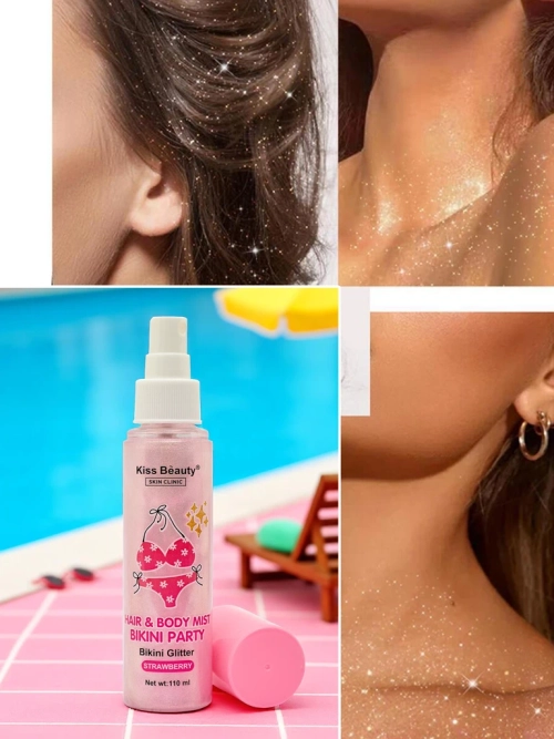 - Izsmidzināms izgaismotājs ķermenim un matiem piešķir ādai mirdzumu un starojošu izskatu. Vieglā formula ir viegli uzklājama, izceļ priekšrocības un izgaismo katru kustību.