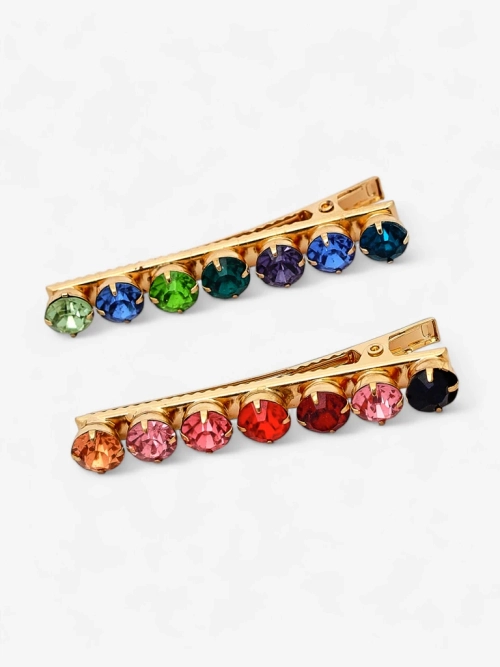 - Matu saspraužu komplekts ar krāsainiem kristāliem – stilīga matu rotaslieta jebkuram gadījumam.