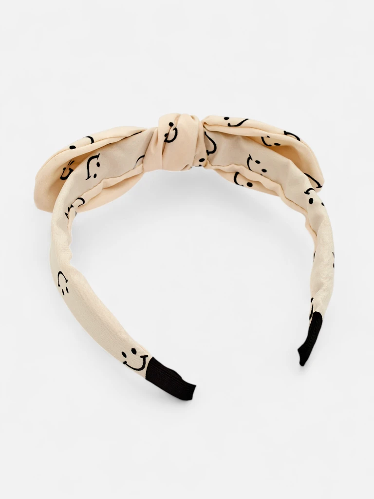 Royalfashion Kids' Headband with Bow Featuring Smiley Face Print