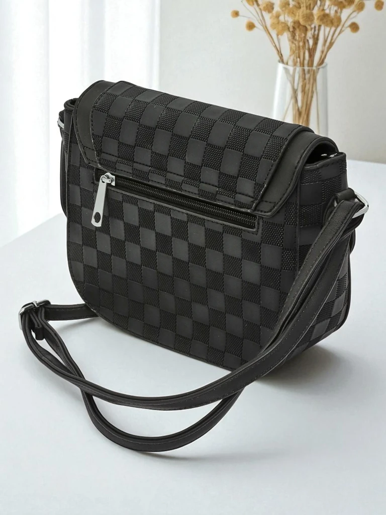 - Mazā sieviešu rokassoma no eko ādas ar modernu rūtiņu rakstu. Soma aizdaram ar rāvējslēdzēju, regulējama pleca siksna un viena nodalījuma ērtībai un stilam ikdienas lietošanai. Lieliski piemērota telefonam, makam un sīklietām.