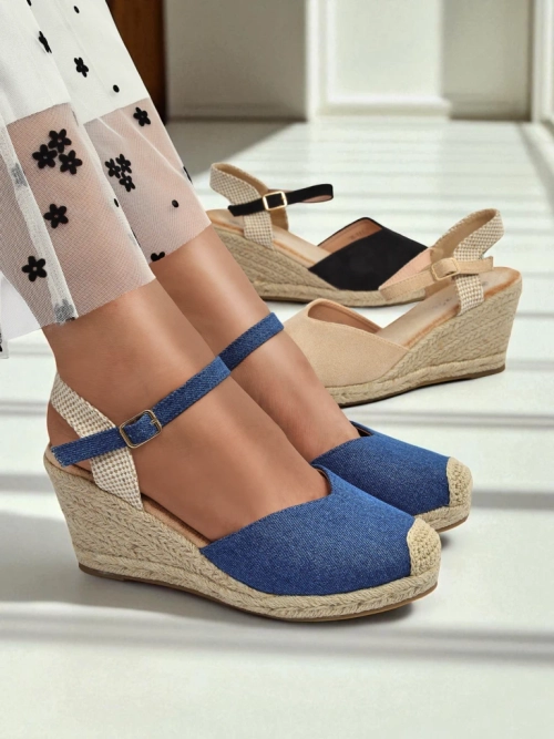 - Sieviešu Solara Espadrille ķīļveida sandales bez papēža, izgatavotas no ekoloģiskas zamšādas un auduma. Aiztaisāmas ar sprādzi, tās apvieno vieglumu ar modernu espadrilu stilu. Ideāli piemērotas vasarai, tās nodrošina komfortu un unikālu izskatu.