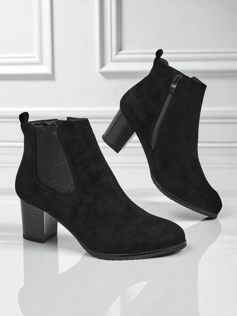 Lav: Botki damskie Velvet Trace na obcasie, eko zamszowe