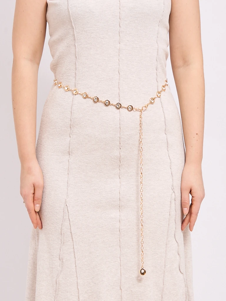 Aurelia Bella Donna – lawowy pasku metalowy z kryształkami, złoty 115 cm