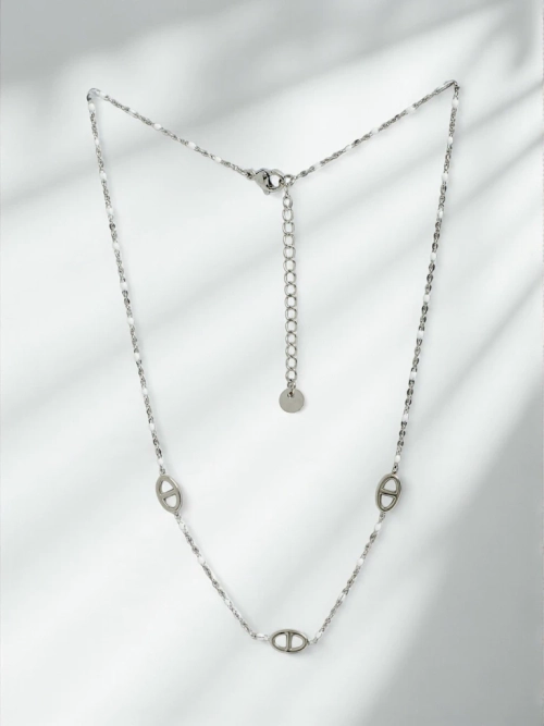 Naszyjnik srebrny Theodora Milano to połączenie elegancji i subtelności inspirowanej ponadczasową włoską klasyką. Wykonany z wysokiej jakości srebra próby 925, pokrytego warstwą ochronną rodowania, zapewniającą odporność na matowienie oraz wydłużającą jego trwałość. Każde ogniwo zostało precyzyjnie wycięte laserowo, dzięki czemu cały naszyjnik prezentuje się lekko oraz nowocześnie. Brak elementów alergizujących sprawia, że produkt jest bezpieczny nawet dla osób z wrażliwą skórą.Naszyjnik cechuje minimalistyczny design, który doskonale wpisuje się w aktualne trendy mody na biżuterię geometryczną i delikatną. Delikatne ogniwa w kształcie owalnych oczek nadają mu niepowtarzalnego charakteru, będąc subtelną ozdobą zarówno do codziennego stroju, jak i eleganckich stylizacji. - Uniwersalny styl pasujący na każdą okazję - Hipoalergiczny, bezpieczny dla skóry wrażliwej - Wytrzymałość i trwałość dzięki rodowaniu - Lekkość, nie obciąża szyi nawet przy całodziennym noszeniu 1. Na co dzień: Noś naszyjnik z prostą, białą koszulą i jeansami dla efektu niewymuszonej elegancji. 2. Do pracy: Połącz z klasycznym żakietem i sukienką midi w neutralnych odcieniach. 3. Na wieczór: Naszyjnik pięknie podkreśli dekolt małej czarnej lub bluzki z jedwabiu; można go łączyć z innymi delikatnymi łańcuszkami dla efektu warstwowego (layering). Aby zachować blask, przechowuj naszyjnik w oddzielnym pudełku lub woreczku z mikrofibry. Czyść miękką ściereczką do biżuterii, unikaj kontaktu z wodą, perfumami oraz środkami chemicznymi. Po każdym założeniu, delikatnie przetrzyj naszyjnik, by usunąć ślady po skórze. Minimalistyczna biżuteria to hit ostatnich sezonów. Geometryczne kształty i delikatne srebro doskonale podkreślają naturalną urodę i wpisują się w trend 'quiet luxury', akcentujący subtelną elegancję oraz ponadczasowość akcesoriów. Naszyjnik Theodora Milano to propozycja must-have dla każdej kobiety śledzącej modowe nowinki.