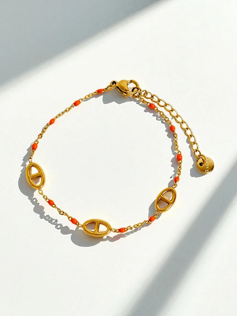 Bransoleta Aurelia Perseus je posebna ponuda za ljubitelje subtilne, a istodobno izrazite bižuterije. Napravljena je z plemenitoga jekla pokritoga z plastom 18k zlata z galvanizacijom, ča jamči trajni, leskuć efekt i otpornost na habanje. Drobni črljeni koralji su pomnjivo postavljeni med članki, dajući cjelini unikatni, ljetni karakter, a geometrijski članki inspirirani motivi starodavne Grčke i Rima donose efektne detaje, ki razlikuju taj model od ostalih ukrasov. Bransoleta ne sadrži nikl, zahvaljujući čemu je sigurna i za alergičare. Precizna obrada i komotno zapenjanje tipa karabin naglašavaju njenu funkcionalnost i komoditet nošenja na svaki dan. - Trajnost i otpornost na oštećenja zahvaljujući materijalom visoke kvalitete. - Univerzalni dizajn, ki paše različnim stilizacijam: od casual, preko boho do formalnih setov. - Ukrasni črljeni akcenti dodaju energije i privlaču pogled. - Bransoleta je izvrstan poklon za blisku osobu ili kot stilski dodatak na svaki dan. 1. Set z lanenom košuljom, jeansami tipa mom fit i sandalama – idealni look za ljetni špacir. 2. Spoji z minimalističnom oblekom midi i drobnimi zlatnimi uhani, tvoreći elegantnu stilizaciju za večernji izlazak. 3. Dodaj ju klasičnoj beli majici i hlačam z visokim pasom za urbani, moderni stil. Da bi sačuvali lesk i lipi izgled bransoleti na duže, čuvajte ju u posebnoj kutiji ili vrećici z materijala. Izbjegavajte kontakt z vodom, parfumami i kemijskimi sredstvami. Čistite ju z nježnom, mekom krpicom. Bižuterija z kolori akcentami i geometrijskimi motivi je apsolutni hit sezone! Bransoleta Aurelia Perseus se savršeno uklapa u najnovije trende, spajajući modernost z klasičnim stilom inspiriranim antikon.