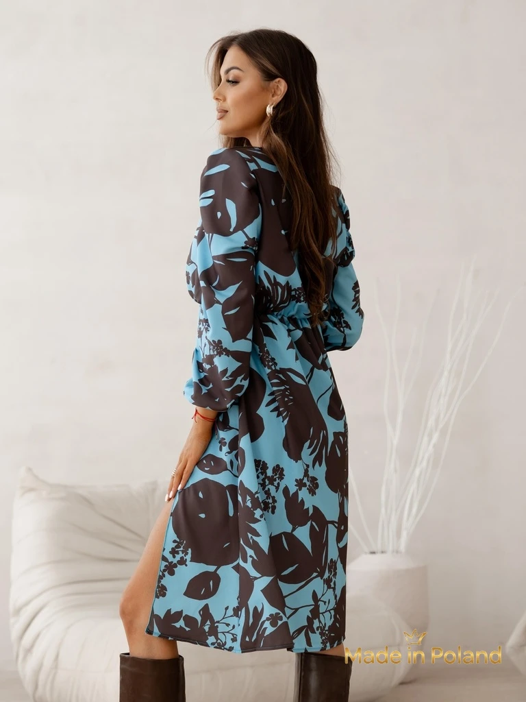 - Sukienka damska midi we wzory, wykonana z przyjemnego materiału, z długimi rękawami i dekoltem kopertowym. Model ma gumkę w pasie. Obowiązkowa pozycja w Twojej szafie! UWAGA: Dokładność pomiaru (+/-) 1 cm. Wymiary mierzone na płasko.