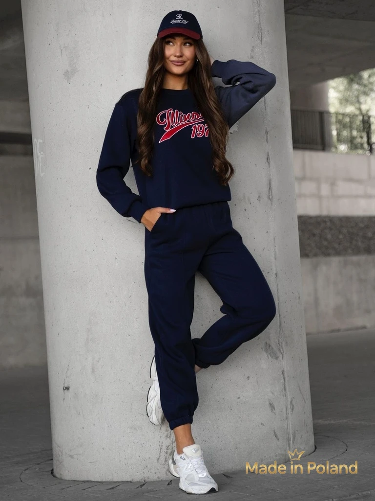- Komplet dresowy lav wykonany z miłego materiału bawełnianego. Bluza z ozdobnymi napisami. Długie spodnie z gumą w pasie i na nogawkach, z 2 kieszeniami. Poczuj styl w tym wspaniałym komplecie!