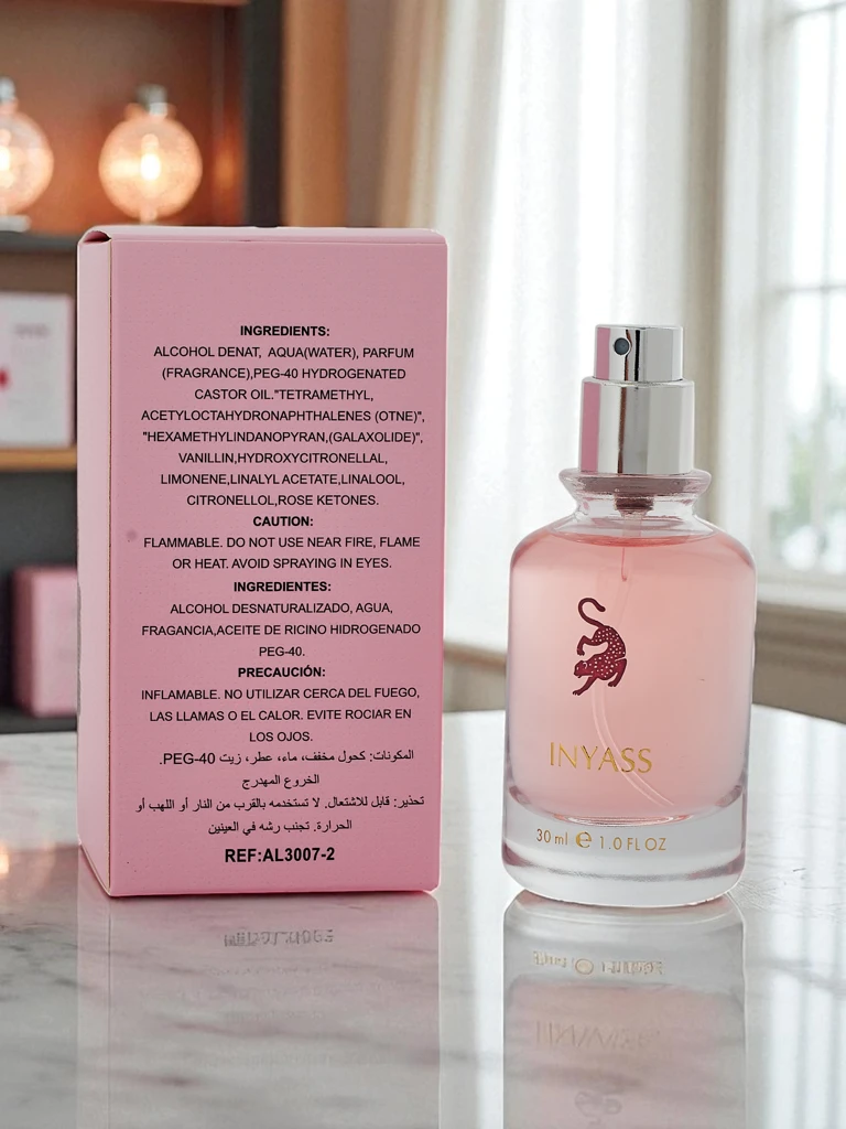 - Bulgarian rose, orange blossom, jasmine, and pink pepper open the fragrance. The heart is composed of peach, blackberry, and iris, while the base consists of vanilla, caramel, musk, amber, and patchouli, giving the composition a fruity-floral, sweet, and
