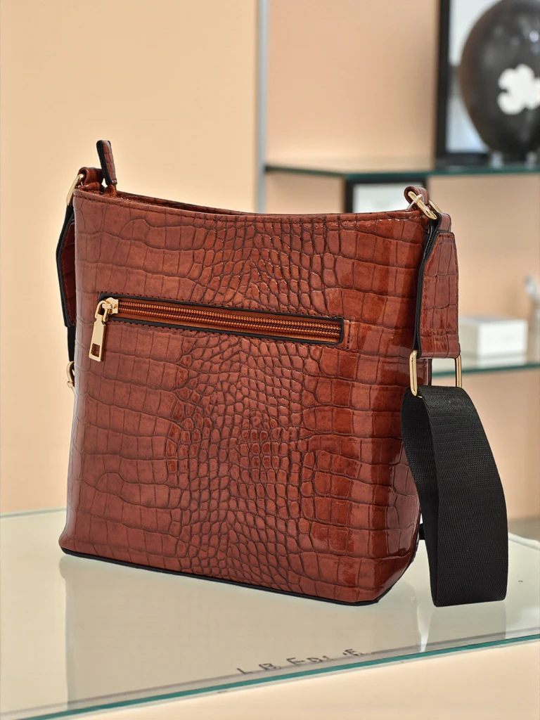 • Kwadratowa torebka ze lakierowanej eko skory ze tłoczeniem. 1 komora, 3 kieszonki, zamek, magnes a regulowany pasek. Styl a funkcjonalność we perfekcyjnym wydaniu.