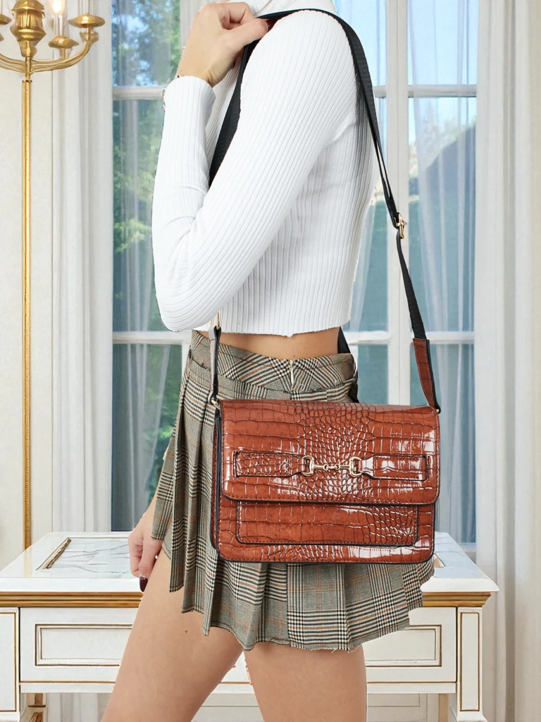 - Çantë e lyer prej lëkure eko me vulë. 1 dhomë, 3 xhepa, zinxhir dhe rrip i rregullueshëm. Stili dhe funksionaliteti në përsosmëri.