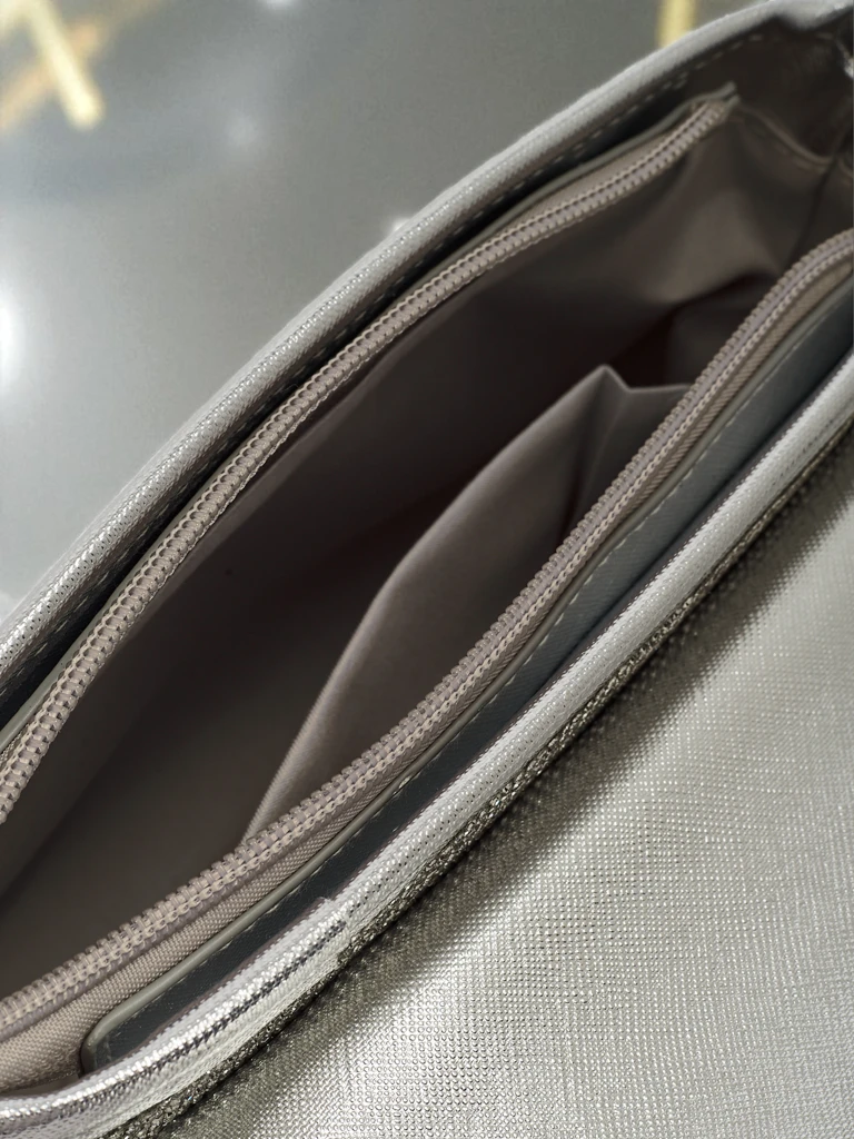 - Elegancka kopertówka z połyskującymi cyrkoniami, 1 komora, zamykana na zamek. Stylowe uszy i ozdobny łańcuszek dodają szyku. Idealna na wyjątkowe okazje – olśniewaj z klasą!