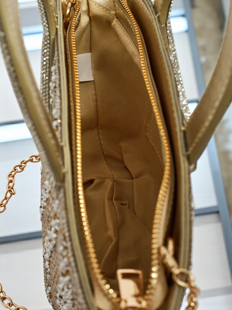 - Elegantne väike naiste käekott tsirkoonidega. Suletav lukuga, käepidemetega ja eemaldatava ketiga. Ideaalne õhtuseks väljasõiduks – väike, muinasjutuline ja sädelev!