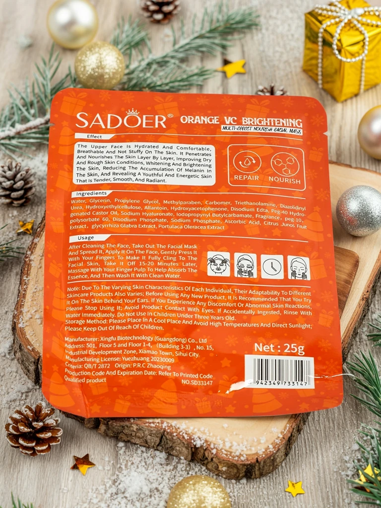 Maseczka SADOER Orange VC Brightening to innowacyjny produkt stworzony z myślą o kompleksowej pielęgnacji skóry. Wykonana z wysokiej jakości składników, takich jak gliceryna, kwas askorbinowy i olejek z pomarańczy, działa nawilżająco i rozjaśniająco, przywracając skórze promienny wygląd. Proces produkcji odbywa się z zachowaniem najwyższych standardów technologicznych, a każdy etap jest precyzyjnie kontrolowany, co potwierdzają odpowiednie certyfikaty.