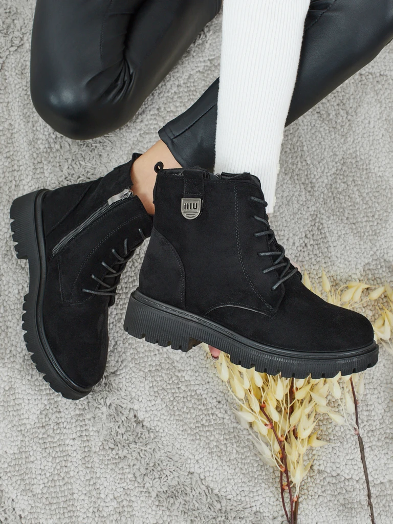 • Lavice trekingové trapéry se šněrovacím svrškem a zipem na boku. Materiál: ekologická semišová kůže. Vnitřek bot je zateplený kožešinou. Ideální na zimu!