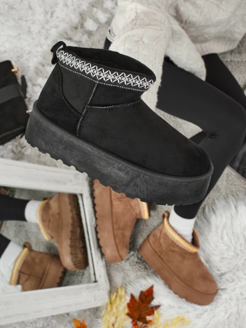 Immerse yourself in a world of comfort and fashion with Bruna platform boots, which combine timeless design with modern trends. These unique boots are the perfect choice for women who value warmth, comfort and original style in colder days. Their name, Bruna, refers to the warm, earthy color that perfectly fits into the autumn and winter color palette. Materials and Production Technology: Bruna boots are made of high-quality synthetic suede, which is not only durable and resistant to everyday use, but also easy to care for and environmentally friendly, being a vegan alternative to natural leather. The inside of the shoe is lined with soft, fluffy artificial fur, which guarantees unparalleled warmth and comfort, enveloping the feet like a delicate blanket. The solid platform sole, made of lightweight but durable synthetic material, provides excellent insulation from the cold ground and stability thanks to the non-slip tread. A characteristic element is the precisely made machine ethnic embroidery in shades of yellow, white and brown, decorating the upper, which adds a unique, artistic character to the boots. Unique Benefits and Comfort of Use: Wearing Bruna boots is pure pleasure. The soft fur inside keeps your feet warm even on frosty days, and the cushioning platform ensures comfortable walking for hours. Thanks to the raised sole, you gain a few centimeters in height while maintaining full stability and comfort. This footwear will allow you to feel free and stylish, regardless of the circumstances. Styling Tips: Bruna boots are an extremely versatile wardrobe item that you can easily match to many styles: 1. Casual Look: Combine them with fitted jeans or leggings, an oversized chunky knit sweater and a down jacket to create the perfect set for everyday outings or weekend walks. 2. Boho Chic Style: Pair the boots with a long, flowing maxi dress or skirt, throw on a fringed cardigan and add a wide-brimmed hat to emphasize your artistic spirit. 3. Urban Accent: For a more dynamic look, wear black skinny trousers, a loose hoodie and a fashionable parka. Bruna boots will add nonchalance and urban chic to the whole. Care and Cleaning: To ensure that your Bruna boots last as long as possible, remember to take proper care of them. Synthetic suede is best cleaned with a soft, slightly damp cloth. For larger dirt, use a special suede brush. Avoid soaking your shoes and using aggressive chemicals. After each use, allow them to dry in a ventilated place, away from direct heat sources. Store them in a dry and cool place. Fashion Trends: Bruna boots fit perfectly into current trends. Platforms are still a hot hit, adding a modern character to the styling and visually lengthening the figure. The trend for comfortable and warm footwear, ideal for the cold months, is invariably strong. Ethnic embroidery and details are a way to stand out from the crowd and add an individual, global accent to the styling. These boots are a combination of classic and modernity that will surely attract attention.