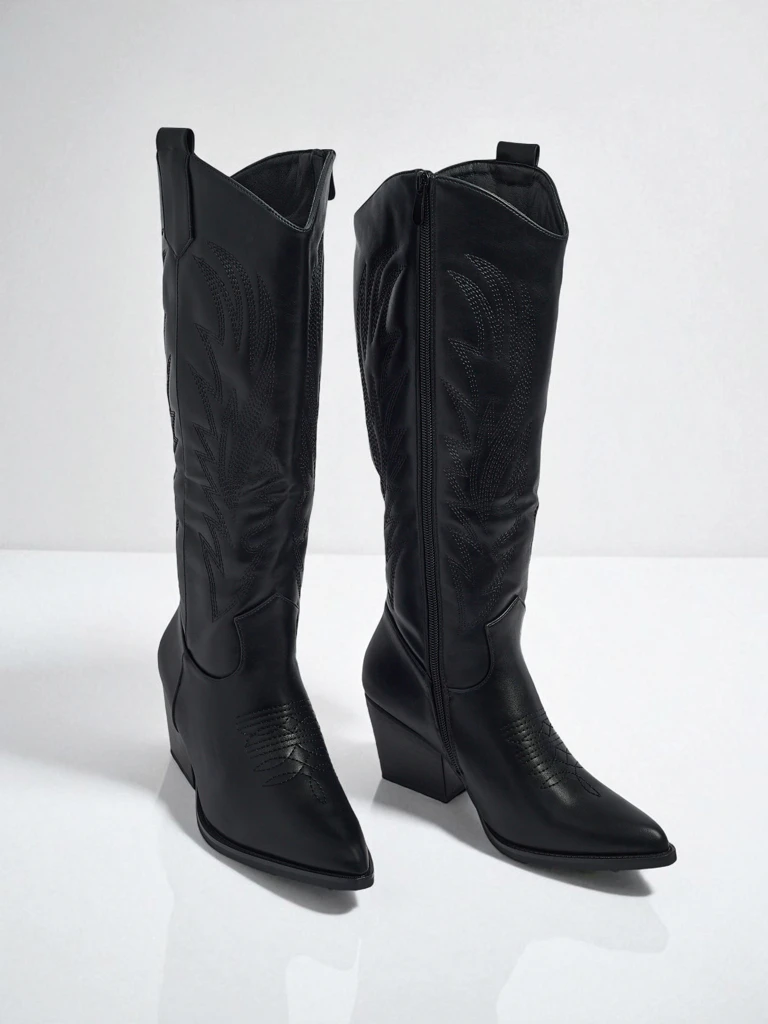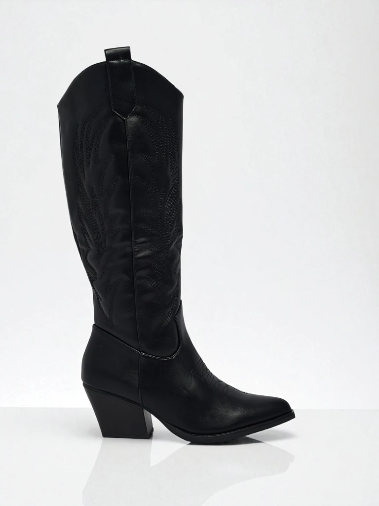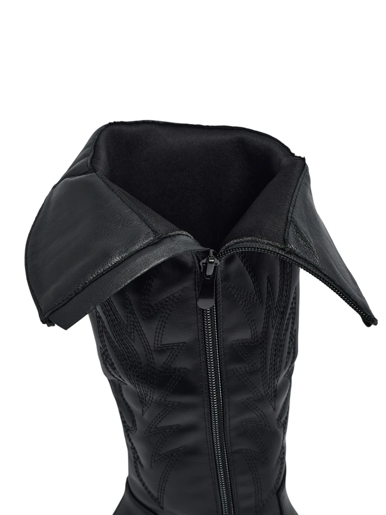 - Kozaki a'la kowbojki na obcasie, wykonane ze skóry ekologicznej zamszowej. Obuwie jest zapinane na suwaki i posiada tkaninowe wypełnienie. Pasują do wielu kobiecych stylizacji!