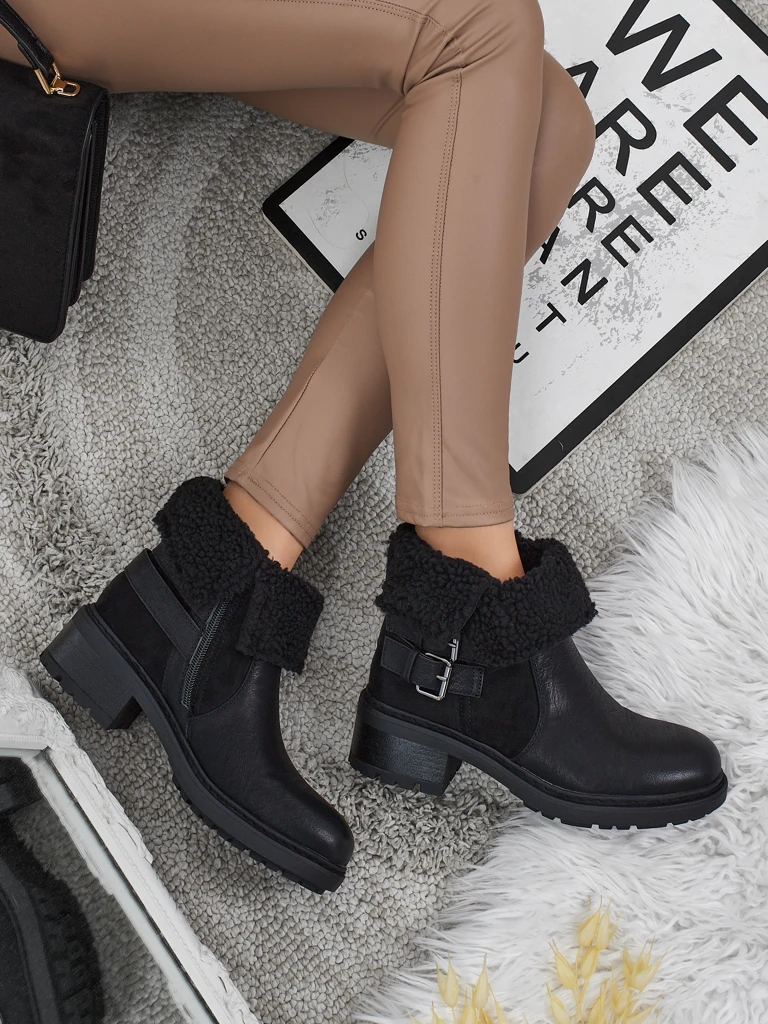 Botki damskie eko skórzane z kożuszkiem Kavira