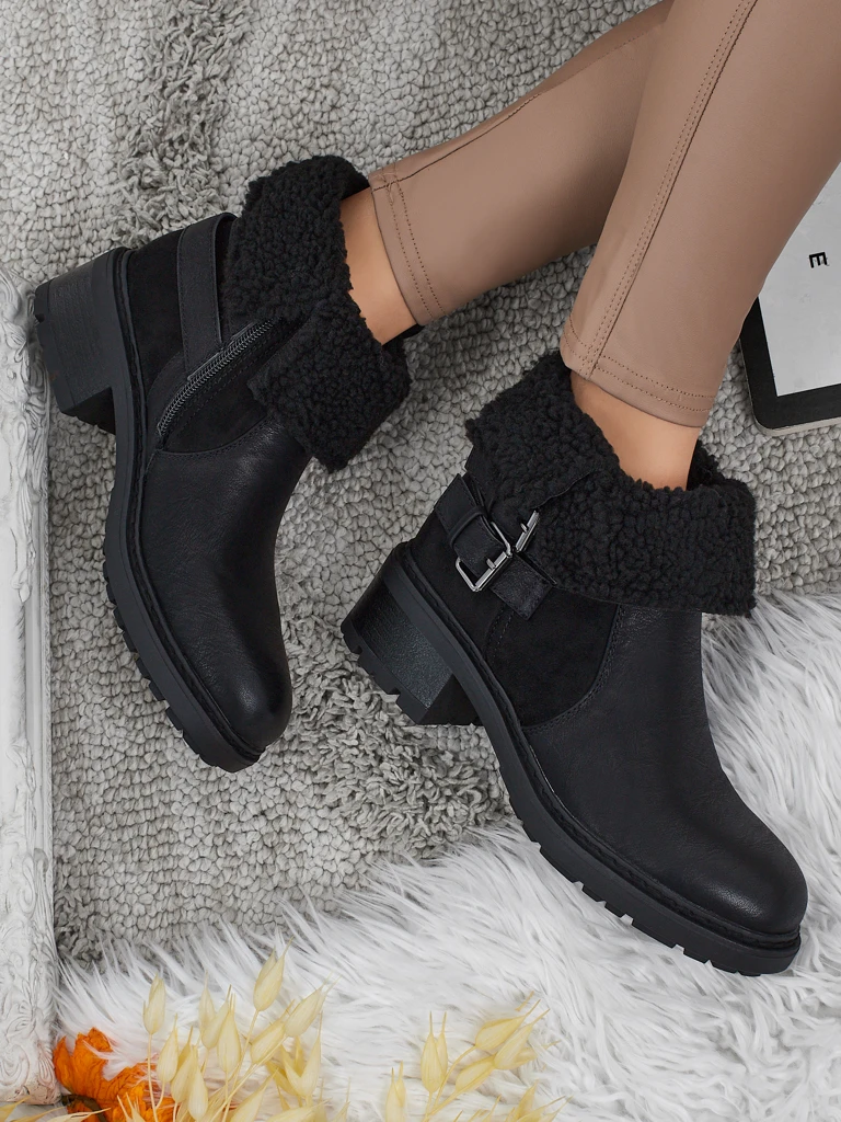 - Damskie botki zapinane na zamek. Model wykonany ze skóry ekologicznej, na płaskiej podeszwie. Posiada ocieplenie a'la kożuszek. Wygodny i stylowy, idealny na jesień!