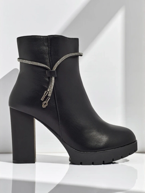 - Komfortabël botëkë surë stëmb, fabrika nga eko lëkurë. Modeli mbyllet me zinxhir. Modeli është i izoluar butësisht me gëzof, ka një zinxhir dekorativ me rruaza. Zgjedhje ideale për vjeshtë!