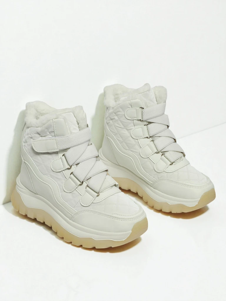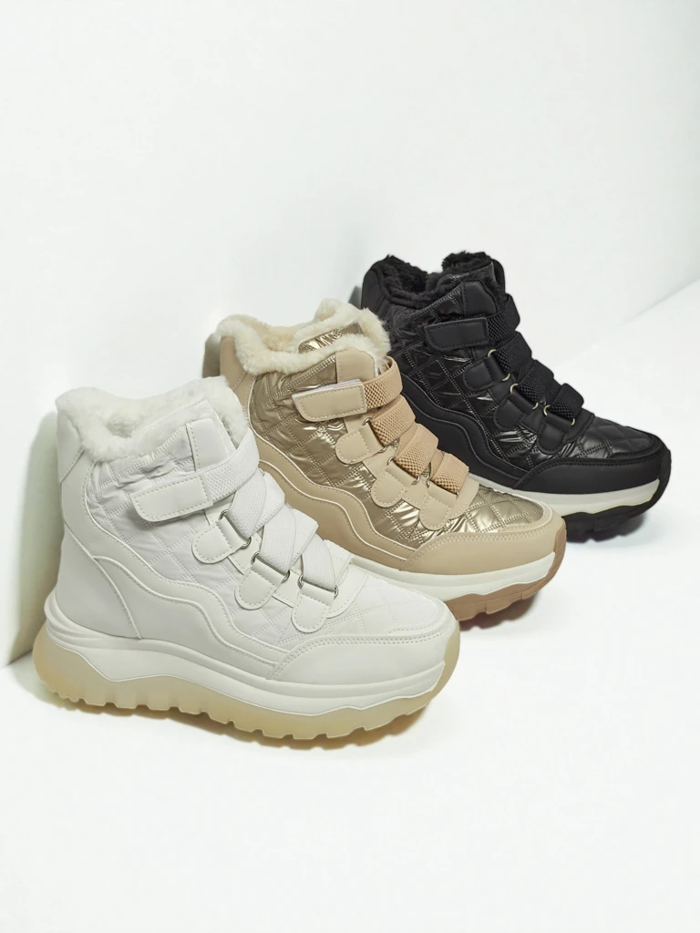 - Lav lav zimowe damskie buty typu śniegowce na grubszej platformie. Cholewka ze skóry ekologicznej i pikowanej tkaniny, ocieplone futerkiem w środku. Zapinane na rzepy. Idealne na zimę!