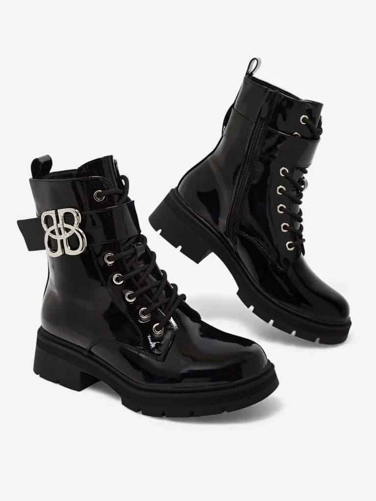 - Workeri lavikõrgesed naiste saapad on eriline jalats, mis ühendab endas stiili ja mugavuse. Valmistatud lakitud öko-nahast, soojustatud õrna karusnahaga. Nöörimismudel ja lukuga kinnitatav. Paksem tald lisab mugavust igal sammul.
