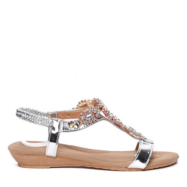Srebrne sandały z kryształkami- Obuwie
