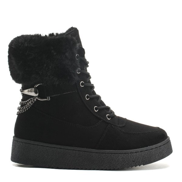 • Sznurowane botki a'la sportowe z grubym futerkiem od środka zapewnią Ci ciepło w chłodniejsze dni. Buty posiadają ozdobne futerko na wysokości cholewki oraz srebrną klamrę z delikatnym łańcuchem. Solidne wykonanie, bardzo wygodne i stabilne.