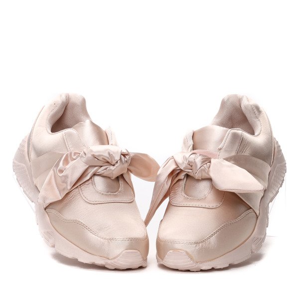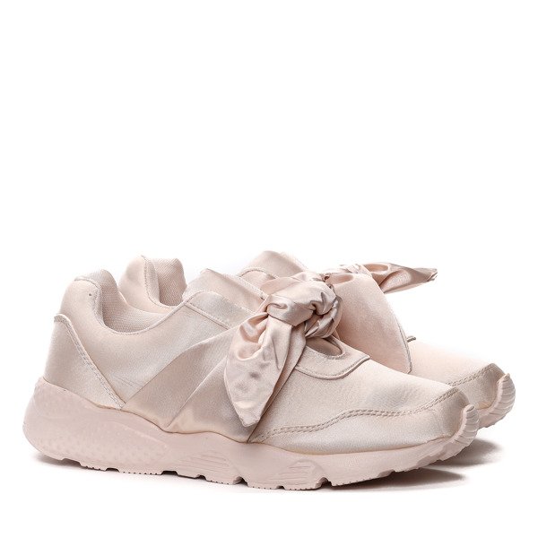Beżowe, satynowe obuwie z kokardką Mabel- Obuwie