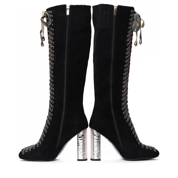 Czarne kozaki z plecionymi sznurówkami Kira - Obuwie