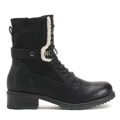 Czarne, wiązane botki a'la traperki - Obuwie