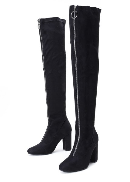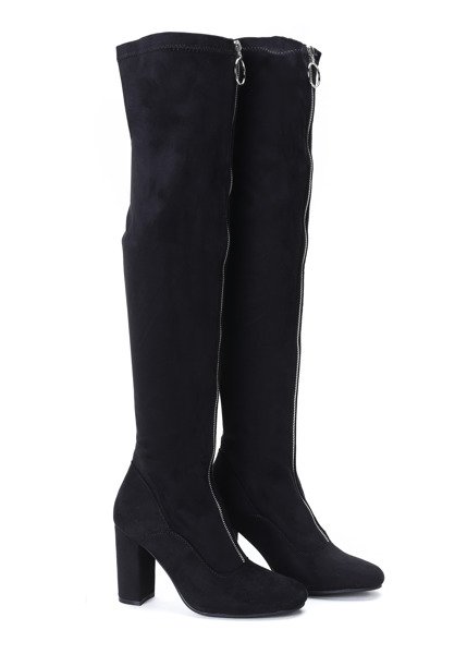• Eleganckie, długie kozaki na słupku wykonane ze skóry ekologicznej zamszowej. Model zapinany suwakiem, który znajduje się na przodzie. Buty świetnie sprawdzą się na co dzień jak i wieczór.