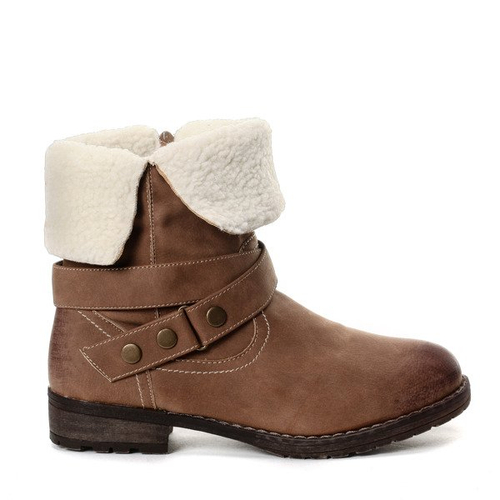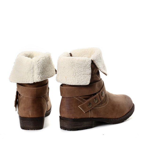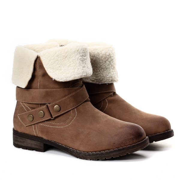 Ciemnobeżowe botki z kożuszkiem - Obuwie