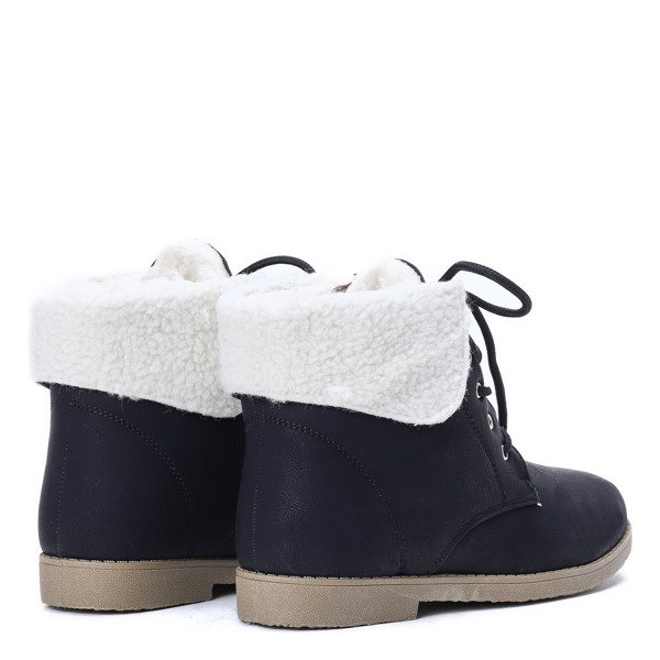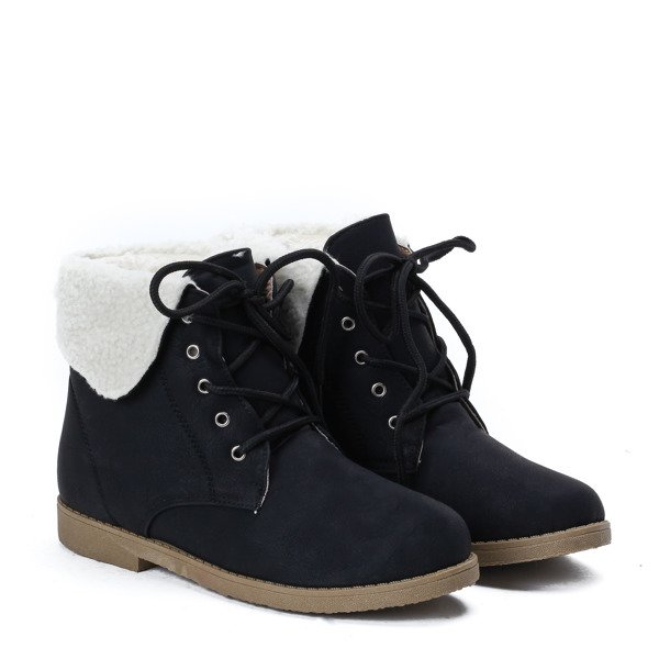 Czarne trzewiki z kożuszkiem - Obuwie