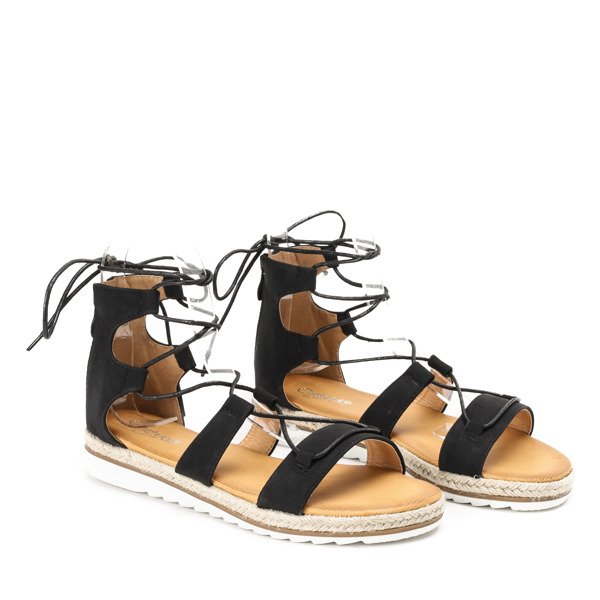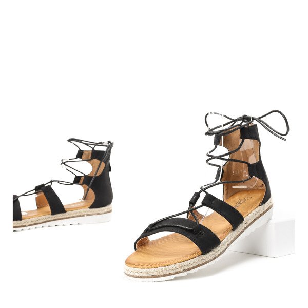 Czarne sandały z wiązaniem wokół kostki Rachela - Obuwie