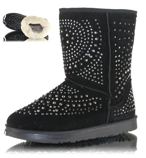 Czarne śniegowce emo z dżetami - Obuwie