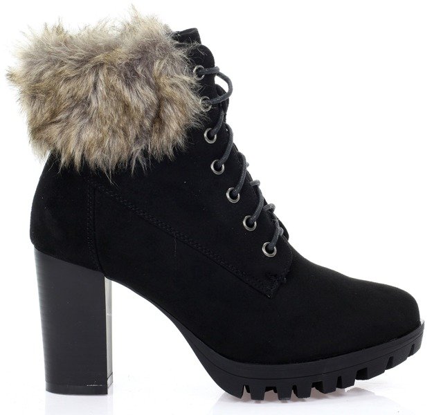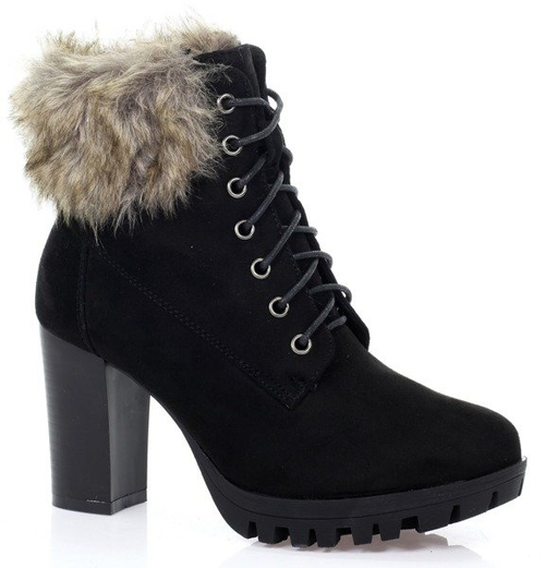 Czarne botki na słupku z futerkiem - Obuwie