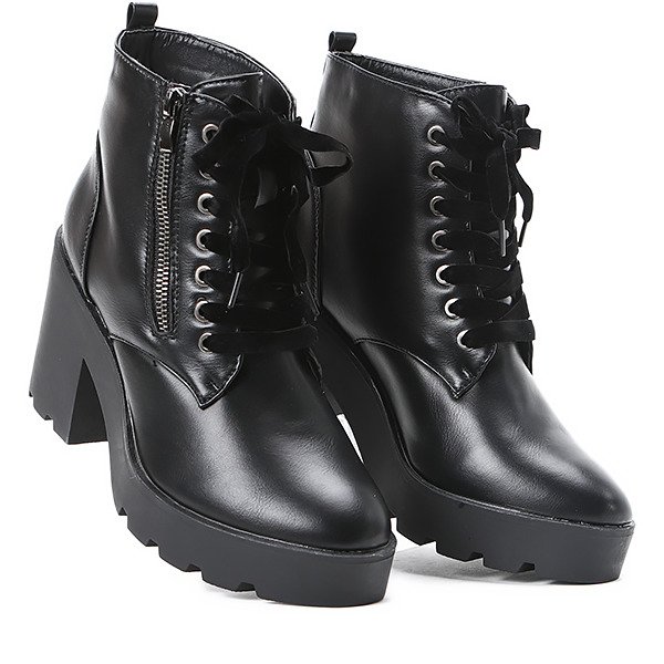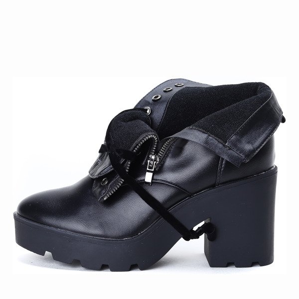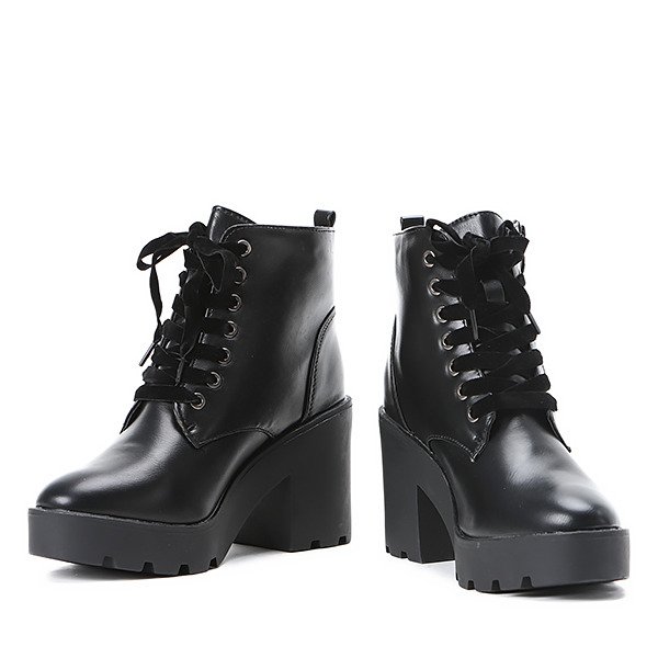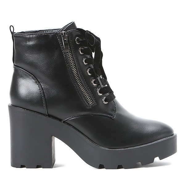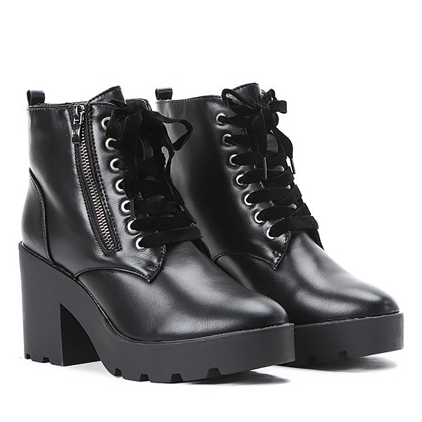 Czarne botki na grubej podeszwie Matessrae - Obuwie