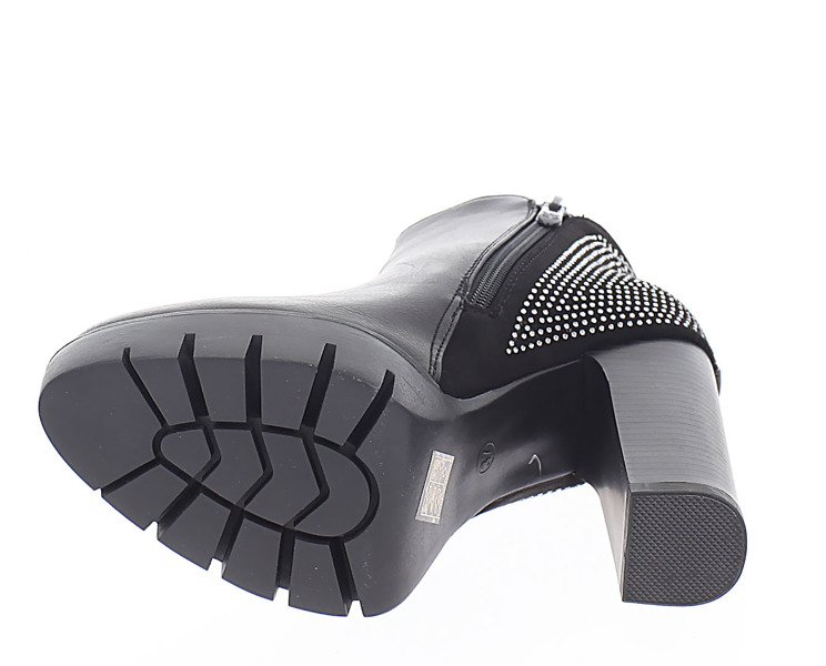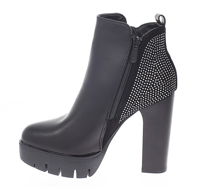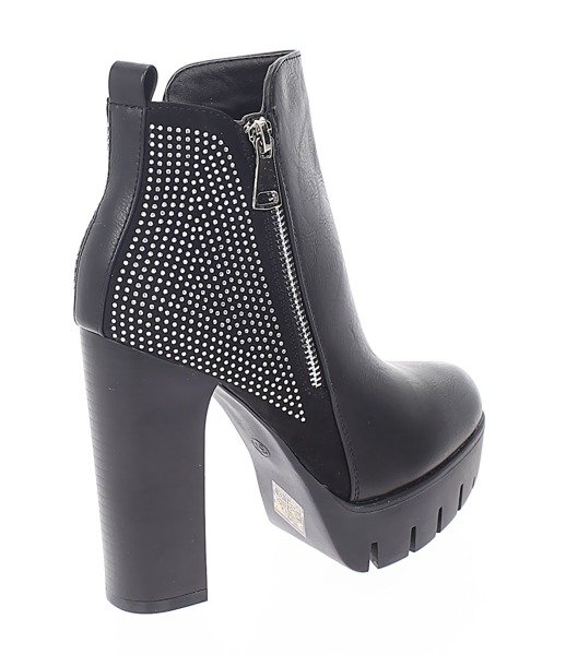 • Rewelacyjne botki na stabilnym słupku. Model zapinany na dwa suwaki. Obuwie posiada ozdobne dżety w tylnej części buta. Bardzo wygodne i solidnie wykonane. Pasują do wielu kobiecych stylizacji.
