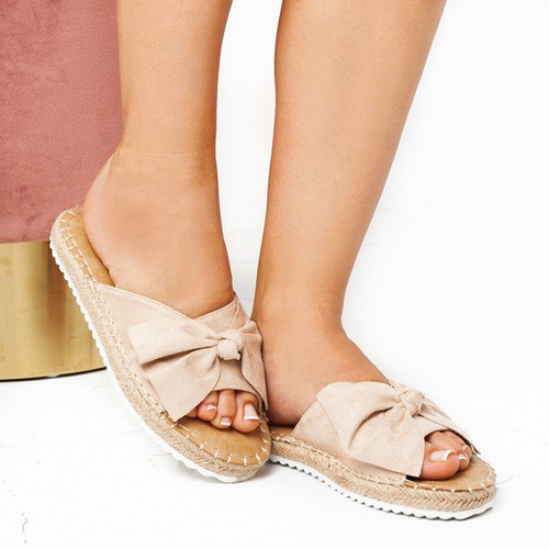 Klapki z kokardką w kolorze nude Summer Flower - Obuwie