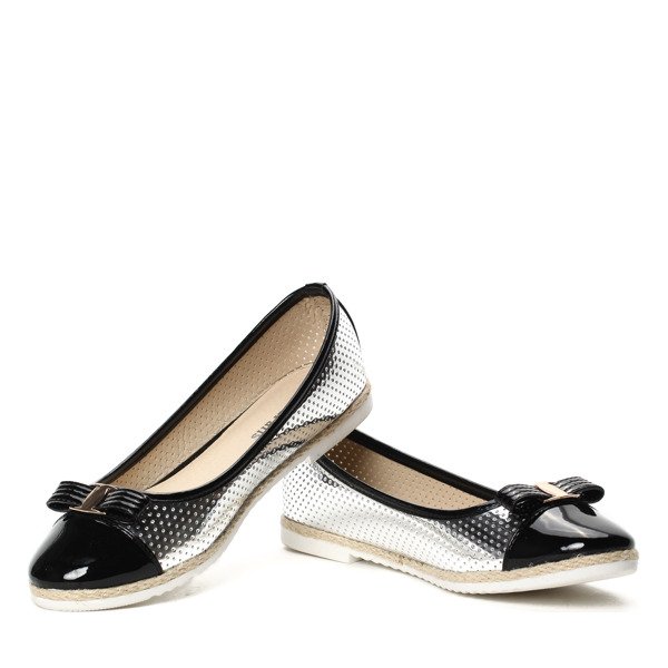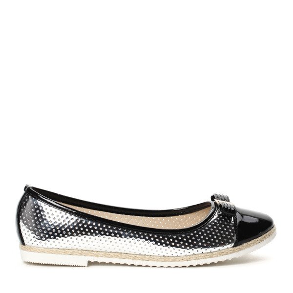 Srebrno-czarne baleriny z lakierowanym noskiem Tossa - Obuwie