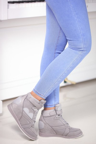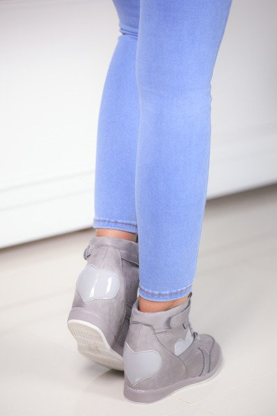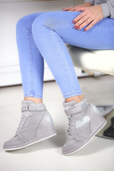 • Wysokie sneakersy na koturnie wykonane z eko skóry zamszowej. Buty sznurowane oraz zapinane na rzepę. Idealnie dopełnią Twoją stylizację!